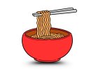 Extra pálivé nudle s omáčkou ve velké obědové misce.