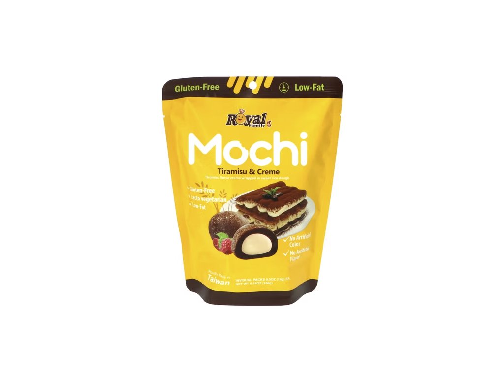 Spojení italské klasiky a japonské tradice v jednom dokonalém soustu! Mochi Tiramisu & Creme od Royal Family nabízí jemné rýžové těsto s bohatou náplní inspirovanou slavnou kávovou specialitou. Krémová textura, lehká chuť kávy a dotek kakaa vytvářejí nezapomenutelný gurmánský zážitek.