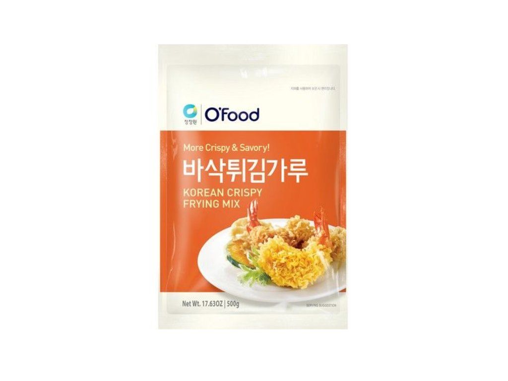 Směs na smažení O'Food je tajnou zbraní pro dosažení extrémně křupavého povrchu. Na rozdíl od běžné mouky obsahuje tato korejská směs přesný poměr pšeničné mouky, kukuřičného škrobu a kypřicích látek, což zajistí, že těstíčko po usmažení zůstane lehké, vzdušné a nebude nasáklé tukem.